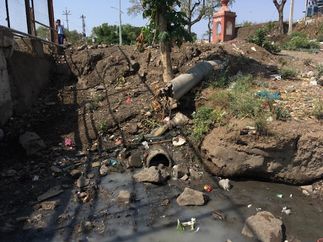 | गटारांचे पाणी नद्यांत सोडले जाते. |