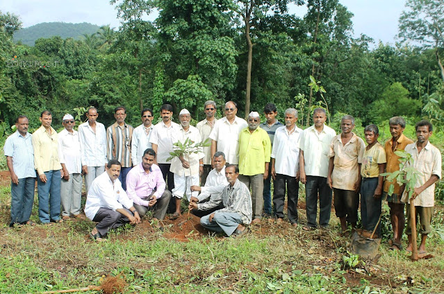 श्रीबाजी वाघंबर ग्रामदेवता मंदिर परिसरात पवतं अर्पण कार्यक्रम प्रसंगी वृक्षारोपण करण्यात आले. ग्रामस्थांनी त्यांच्या गळ्यात घातलेले पवतेदिसत आहे. |